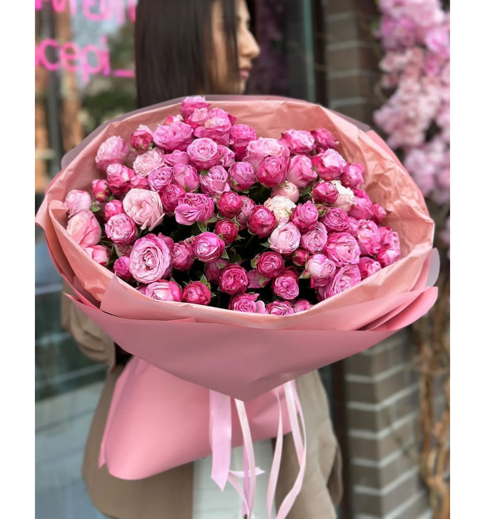 Огромный нежно-розовый букет приятно удивит близкого человека.